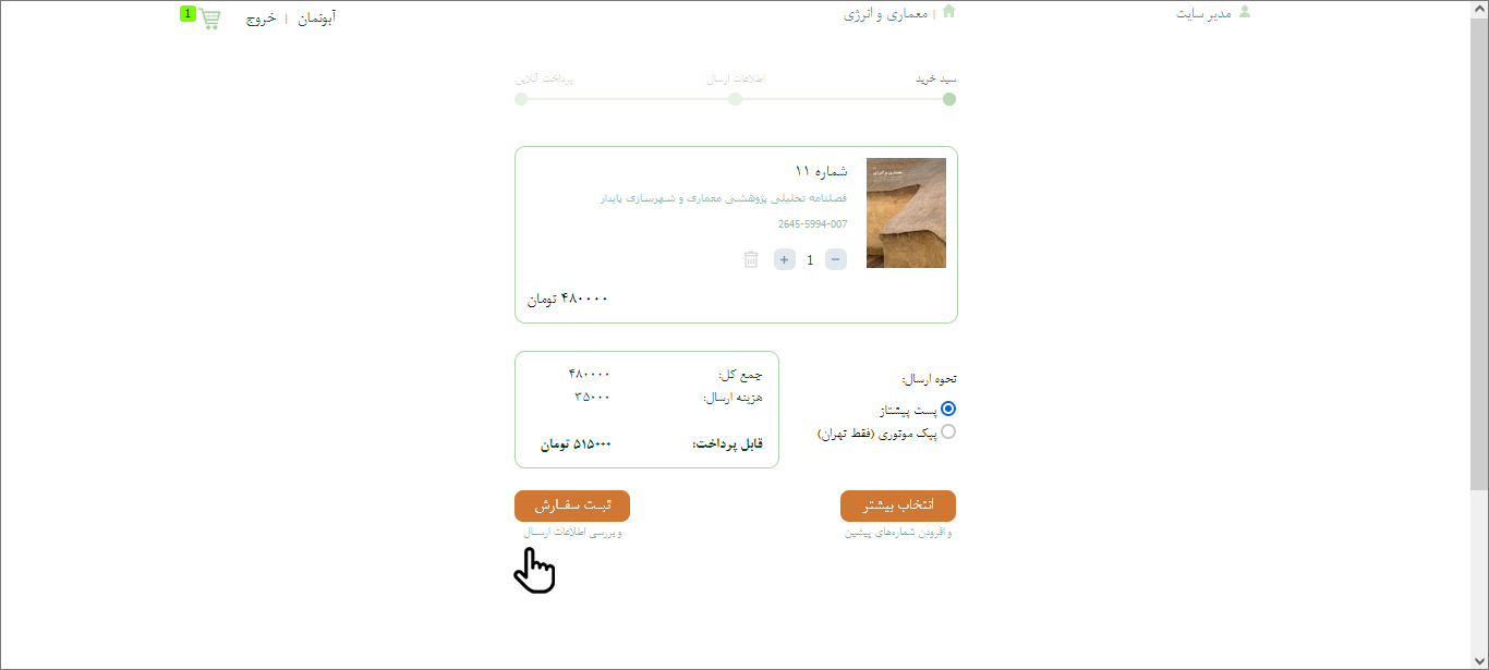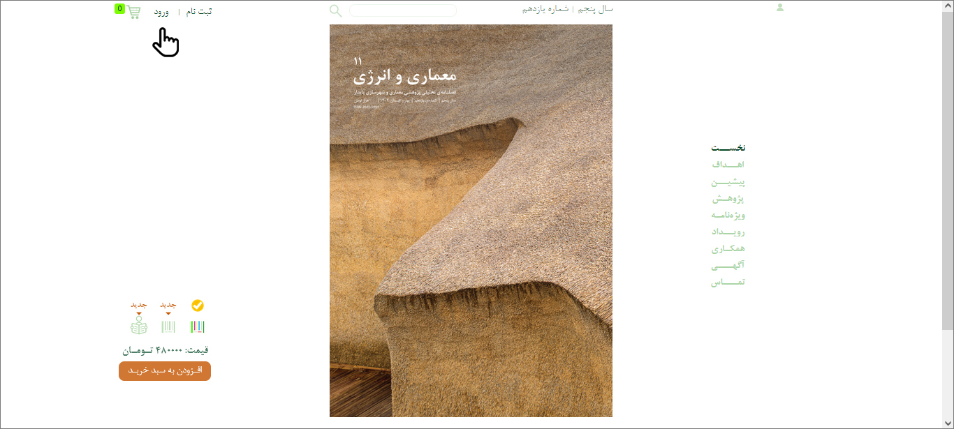 برای انجام خرید آنلاین و ثبت سفارش در وبسایت فصلنامهی «معماری و انرژی»، ابتدا لازم است در سایت مجله ثبت نام کرده و وارد حساب کاربری خود شوید